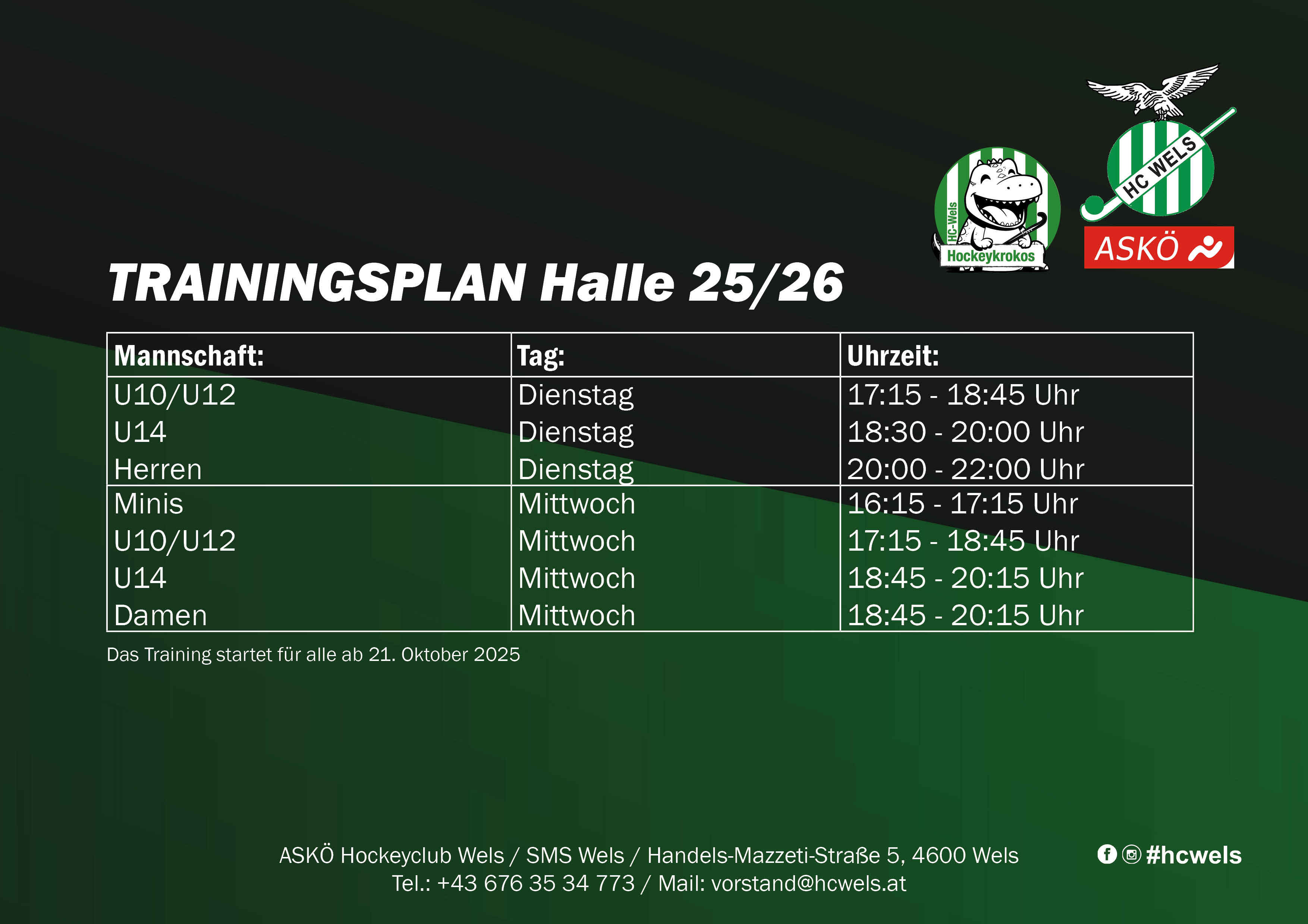Die offenen Spiele dieser Hallensaison werden in der SMS Wels (Handel-Mazzetti-Straße 5, 4600 Wels) ausgetragen.